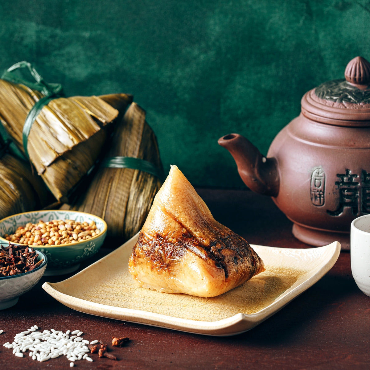 Our signature Nyonya rice dumpling is made from white glutinous rice and a filling of fine pork cubes fried fragrantly with spices.